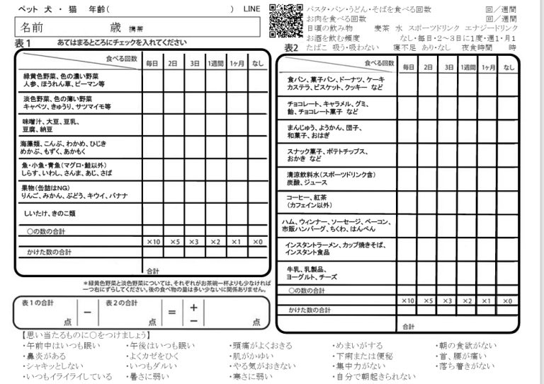 食事チェックシート。ただ記入するだけで食の傾向が浮かび上がる不思議なシート