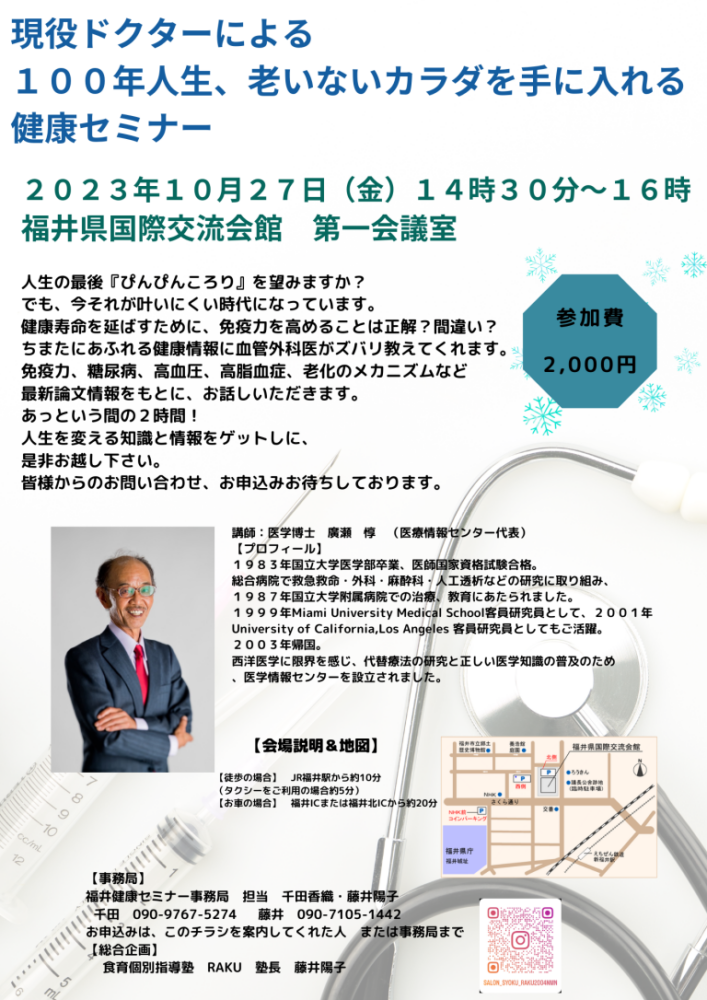 チマタにあふれる健康情報に、振り回されない一生もののことは、現役ドクターから直接話を聞くことです。